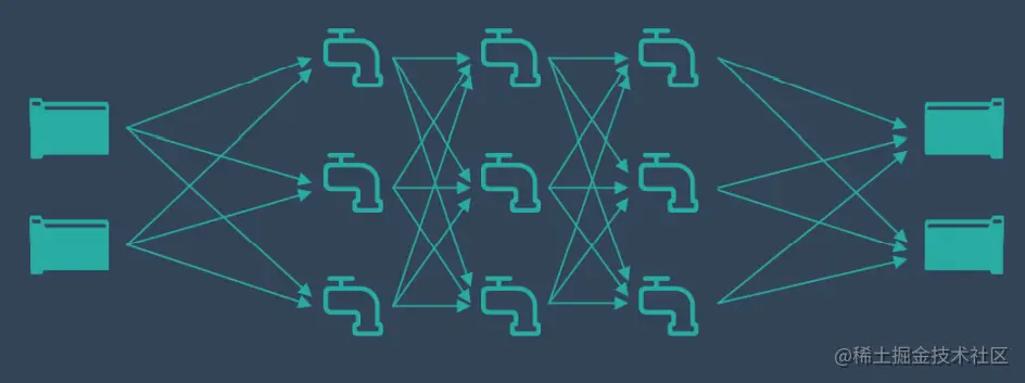 深度学习使用更深层的数学函数解决问题,它属于机器学习的一种方法,类似一个水流系统:
