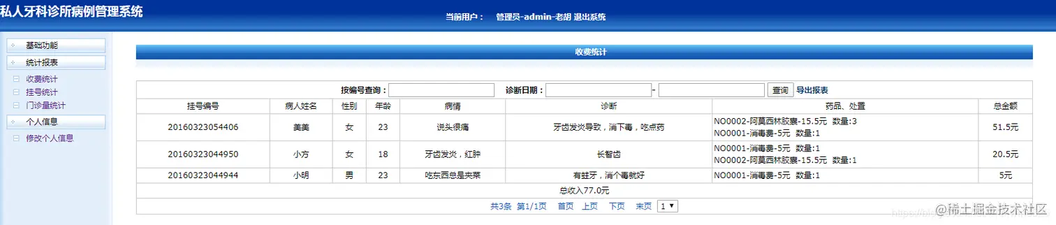 统计报表之收费统计