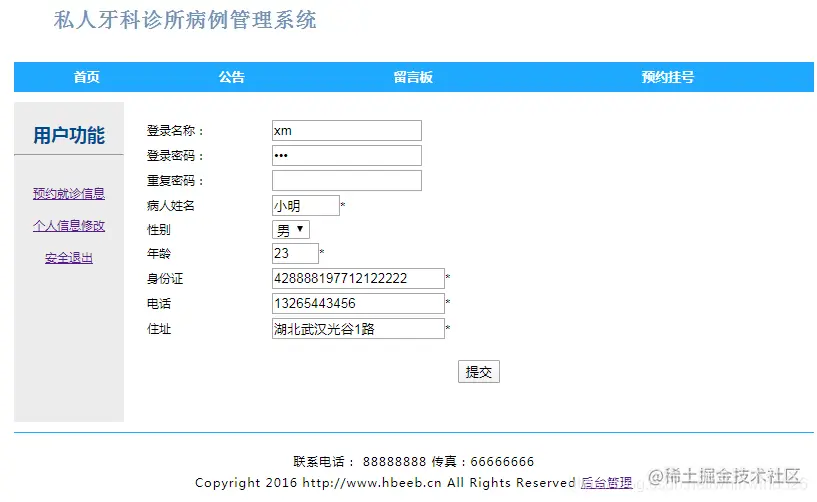 系统分两个角色:系统管理员和前端用户。前台用户可以实现注册,预约挂号,个人信息管理,公告管理,留言;后台管理人员可以管理科室,医院人员,收费统计,预约管理,留言管理,公告管理等。运行无误。