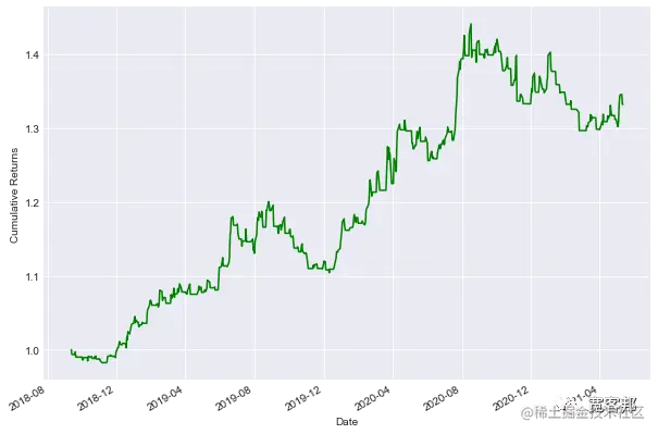 让我们计算一下这个策略的累积收益来分析它的表现。