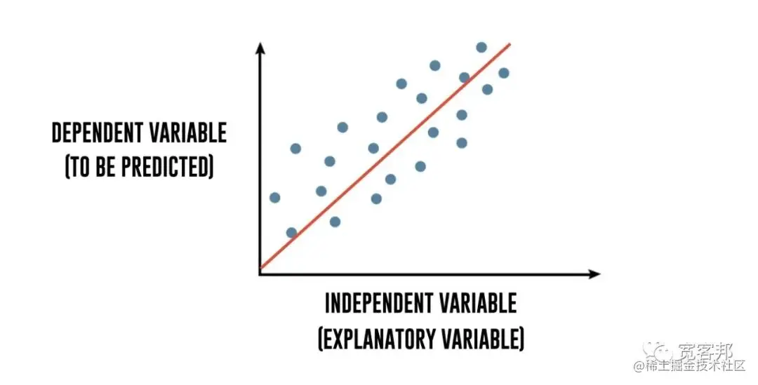 如果我们试图捕捉“x”和“y”变量之间的数学关系,通过对散点图拟合一条线,“最好”根据“x”的观察值解释“y”的观察值,那么这样的方程 x 和 y 之间的关系称为线性回归分析。