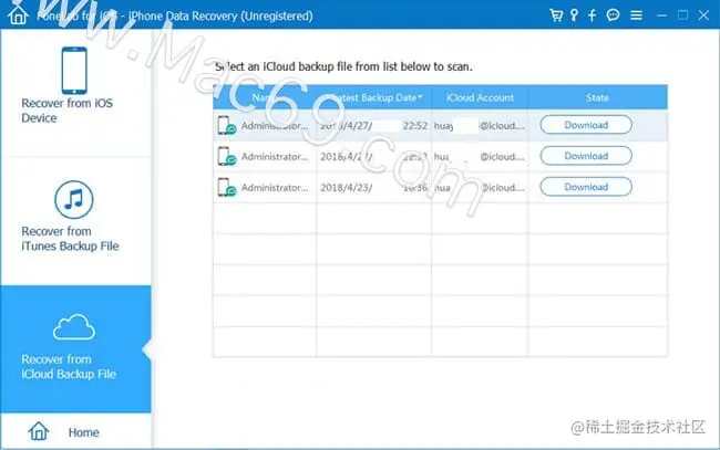 第2步如果您必须在登录 iCloud 帐户后进行选择,您将获得多个备份文件。选择您认为可能包含丢失数据的一个,然后单击开始扫描。