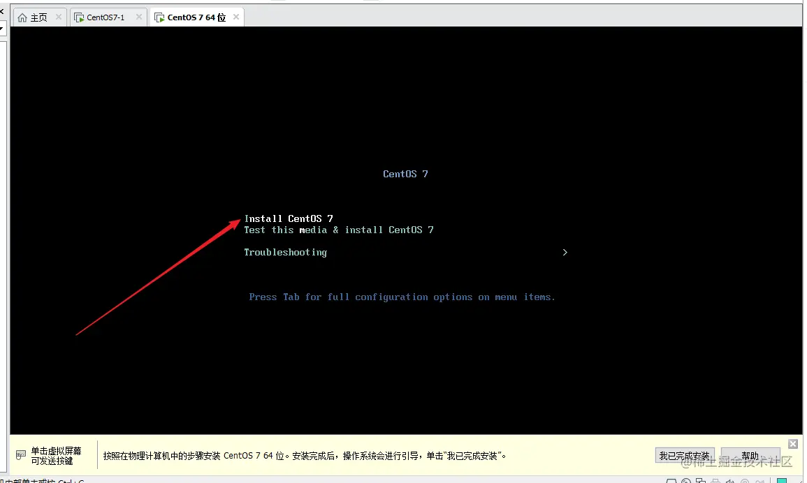 12选择第一项 INSTALL Centos7 ctrl+ALT 切换虚拟机和真机之间的鼠标
