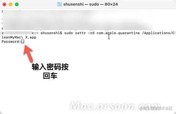 然后按键盘的回车键(return),输入密码,再按回车键,完成。