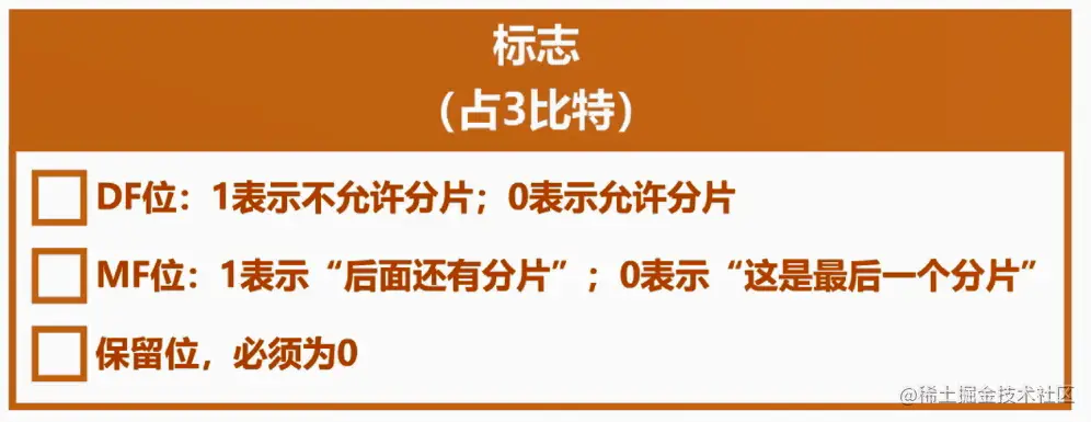 标志(flags) 有两个标志位。第一个标志位指定一个分组不允许被分段,所以必须在能将处理分组当前长度的子网络上传输。第二个标志位指定一个数据报是一个分段分组的最后。