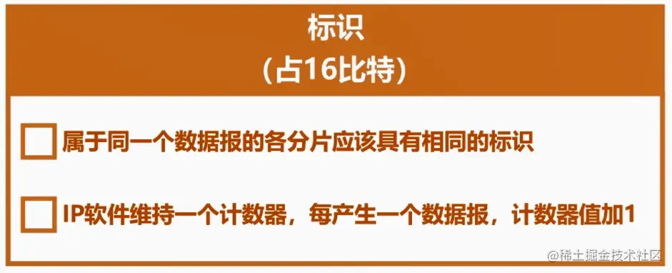 标识(Identification)提供连接独立分段数据报的信息,于是目的站点就可以将它们组装成一个完整的分组。