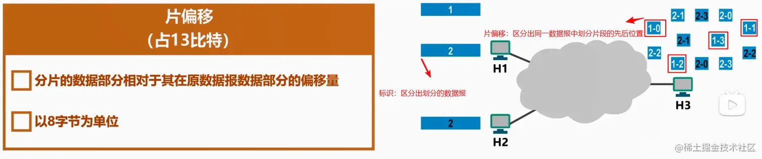 段偏址(Fragment offset) 对于分段数据报,这个域指出这个数据在分组中的原来位置,在重新组装的过程中将用到这个信息。