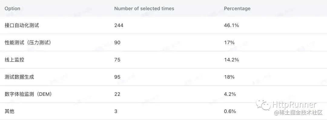 查看原始问卷内容的方式:在公众号 HttpRunner 中发送「首轮问卷原始内容」获得查看链接(已去除用户个人相关信息)。