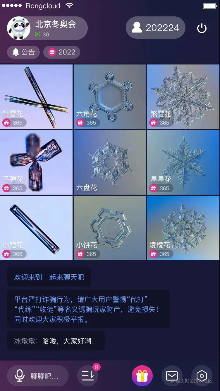 很多人印象当中的雪花都是六角星形,但真正雪花的形状是非常多的,包括棍形、针形、饼状等等。如果他们使用融云的直播 Demo 连麦直播,得衬得上一个九宫格布局。