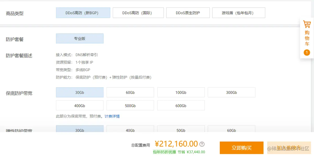 以上整个防御架构从头到尾都充满了金钱的味道,举个例子阿里云DDOS高防最低的30Gb保底防护需要21.216W/年,这还只是最低的30Gb,600Gb则需要379.746W/年。阿里云游戏盾最低也要96W/年。云原生防护56.16W/年。而发起一次DDOS攻击的成本也只有几千块钱。双方的投入成本完全不对等,这对于刚创业的公司来说无疑是灾难性的。