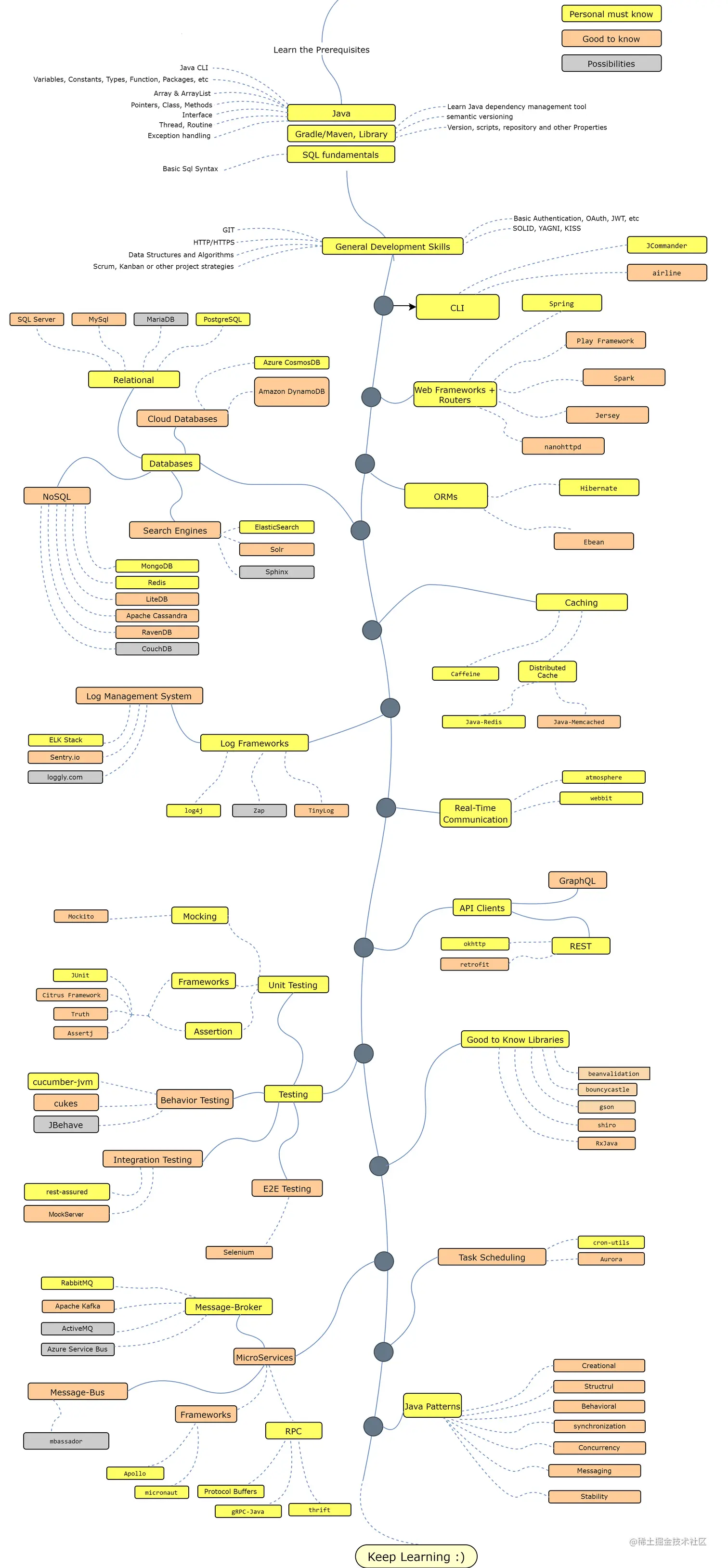 最近把今天收集的java学习资料整理了下,里面包含了计算机基础、算法和数据结构、常用工具、java核心知识、性能优化、基础框架、数据库、消息队列、缓存中间件、搜索引擎、大数据、RPC、网关、容器、面试和书籍等知识,自己觉得这些知识还是挺不错的,在这里分享给大家。