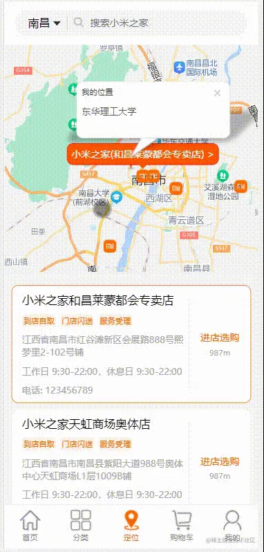 然后就可以通过,Maker自身属性的点击事件,点击不同的Maker图标选中下面不同的地址卡片。通过一样的index选中对应的地址卡片。然后先通过useRef标记Bscroll节点,获取使用Bscroll中的scrollTo方法自动滑动定位到选中的地址卡片。
