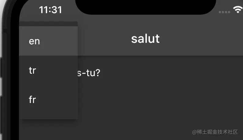 首先,我们需要示例屏幕来显示初始语言的键值(现在我接受在更改为 tr 之后开始 en while 应用程序)。