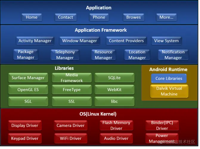 上图是安卓系统架构图,之前我始终停留在一二层,在这一时期,终于有了纵深的实践经验。