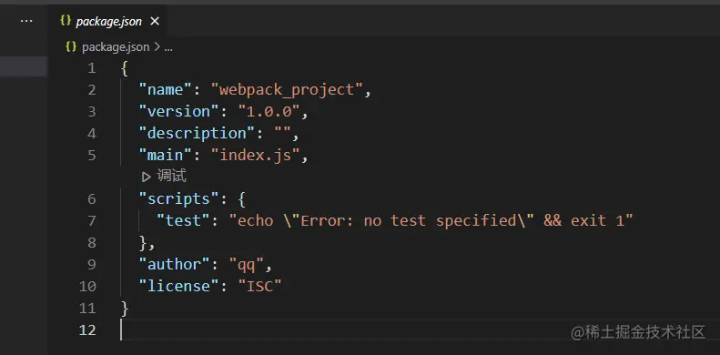 打开 package.json,内容如下: