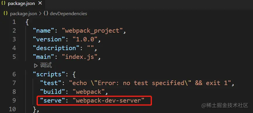 同样的,我们也可以将启动开发服务器的命令配置在 package.json 文件中: