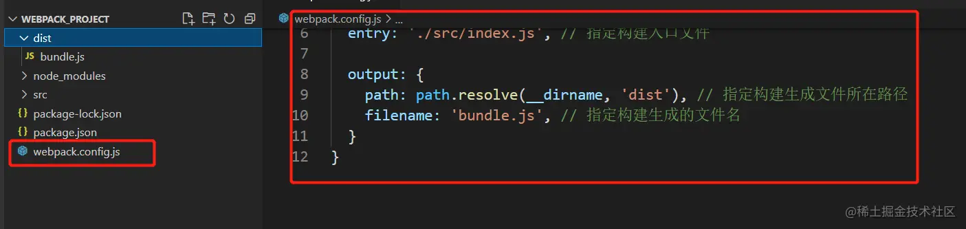 接下来,我们再项目的根目录下创建一个 webpack.config.js 文件作为 webpack 的配置文件:
