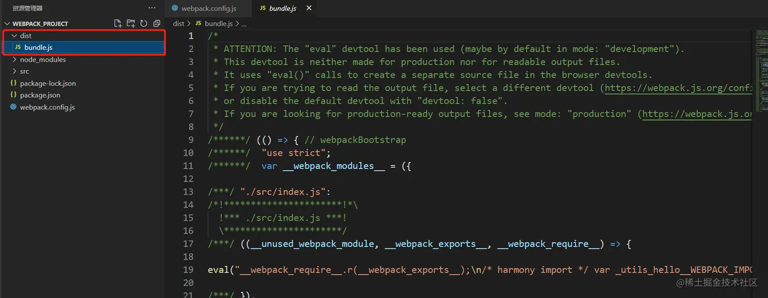 运行 npm run build,发现构建后的文件名变成了 dist/bundle.js: