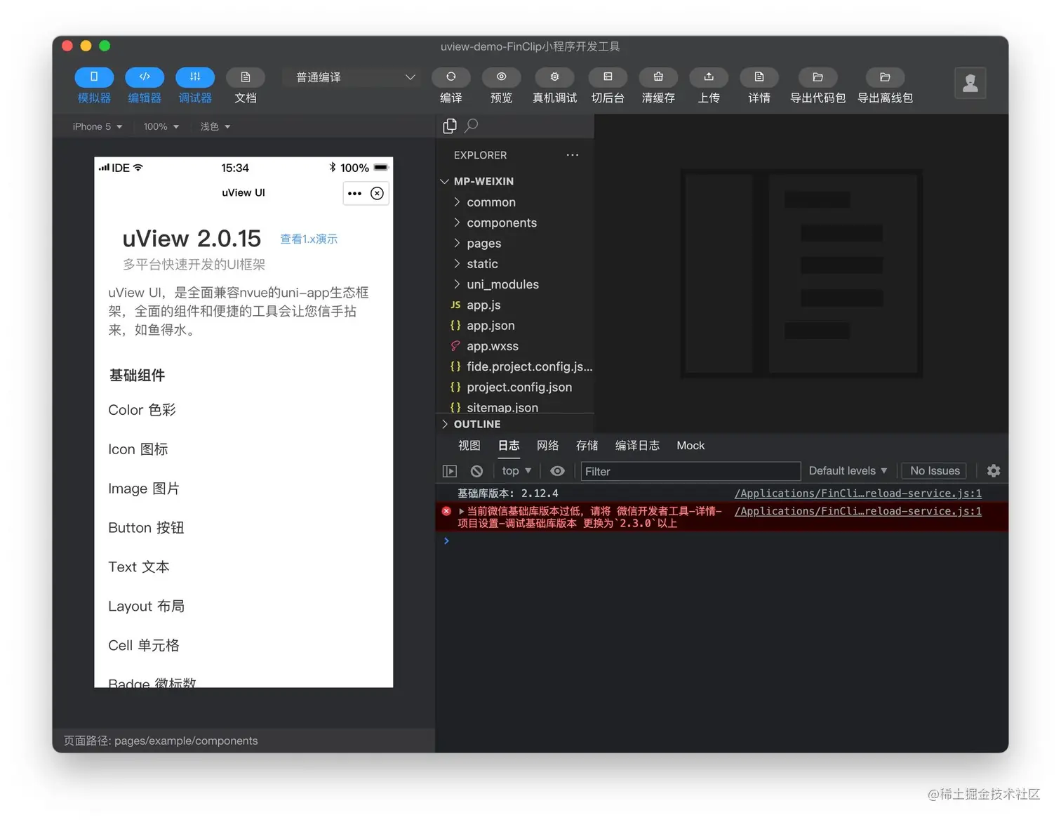 我们从 Github 中下载了官方的示例 DEMO 文件,并通过 uniapp 进行跨端编译,按照不同平台的要求输出对应的小程序,并在各个 IDE 中进行编译预览。