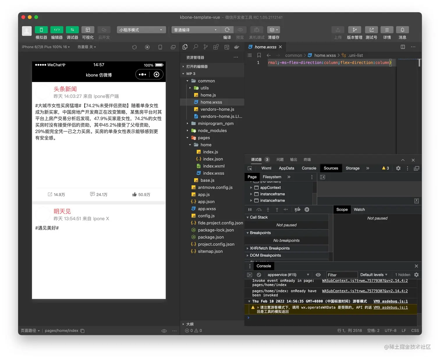 由于 kbone 仅支持微信小程序语法,因此仅在微信开发者工具与 FIDE 中进行了测试,支付宝官方提供了 Antmove,但尝试后发现依然无法编译。