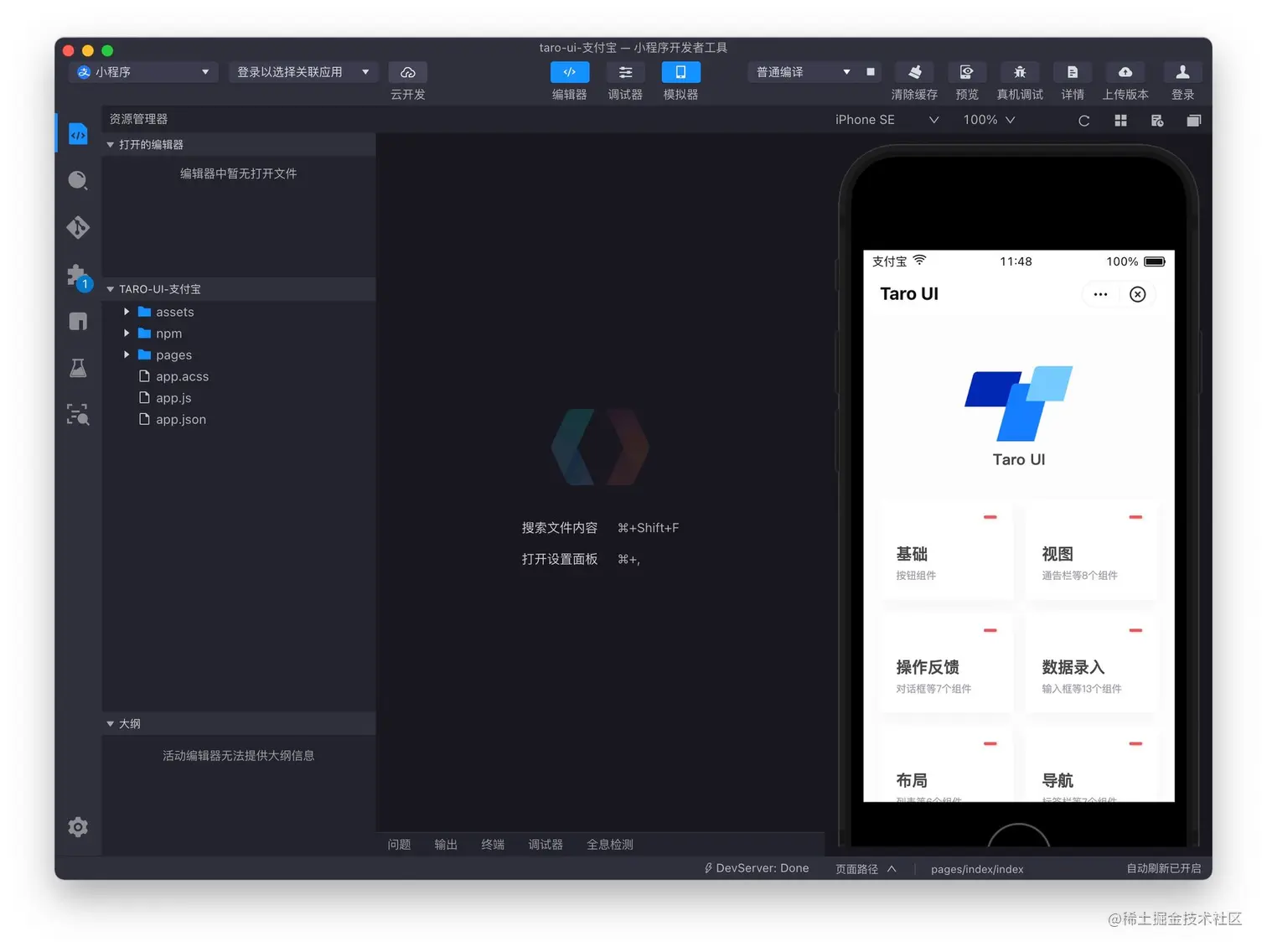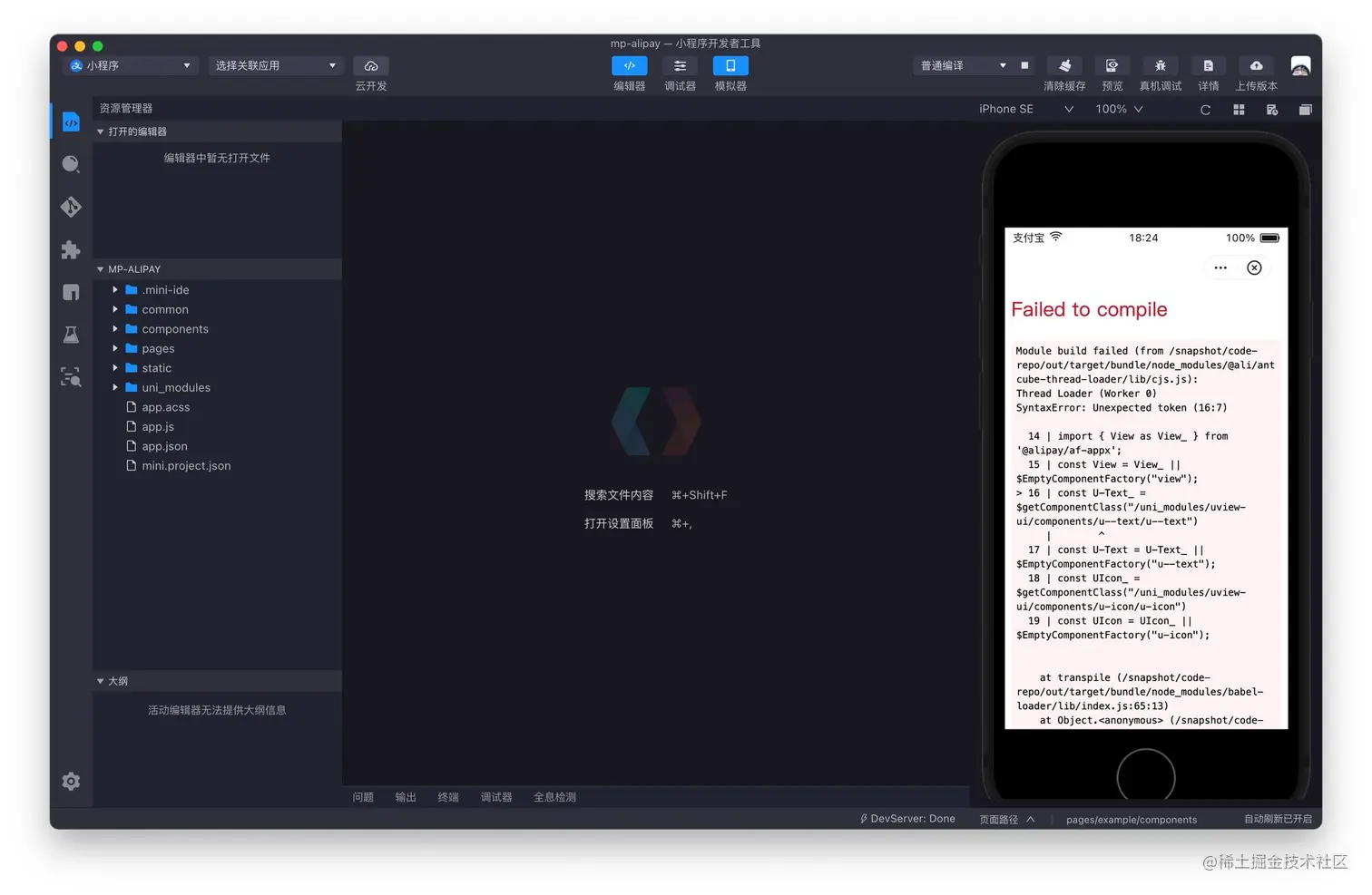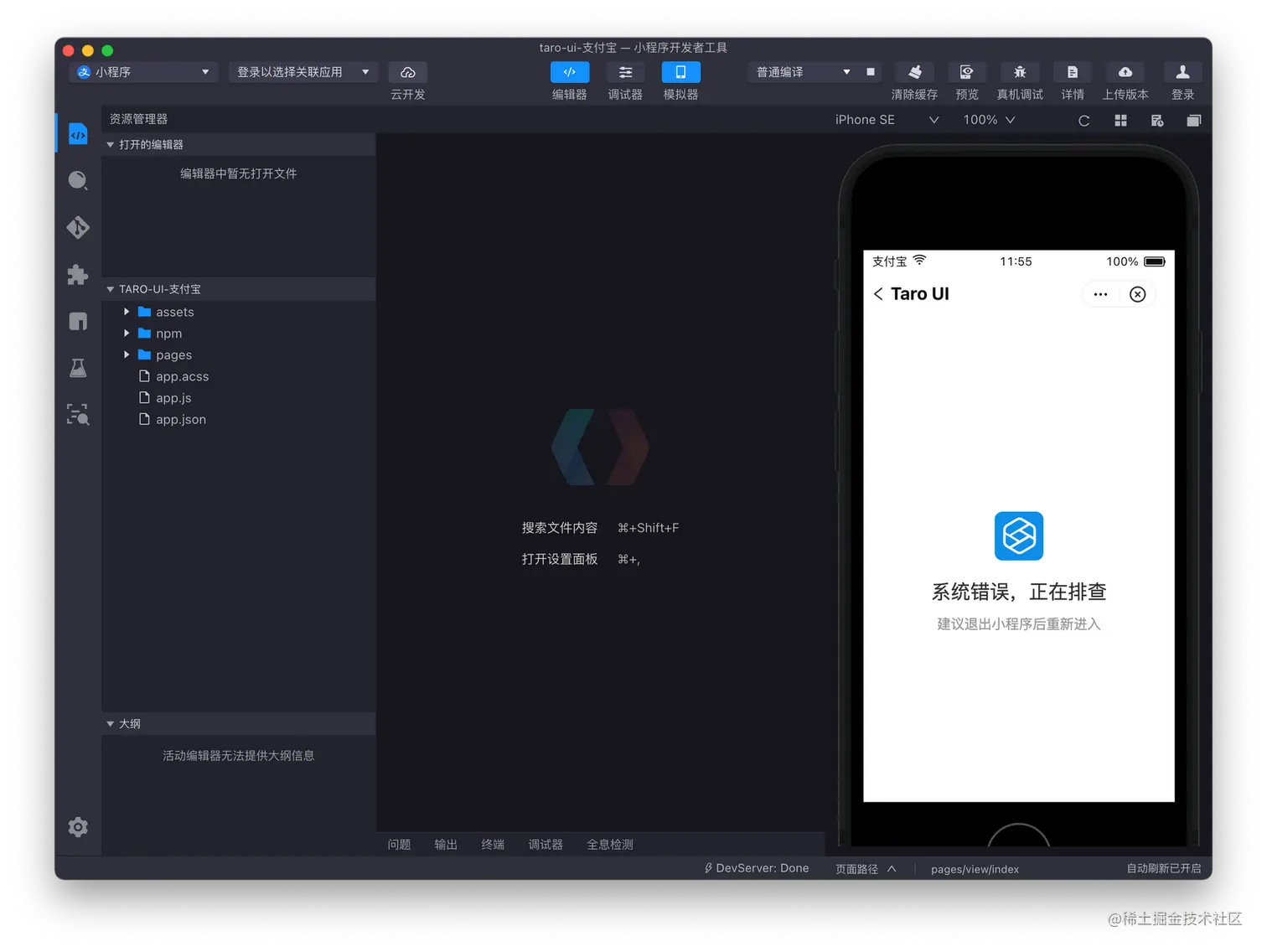 使用支付宝 IDE 进入「视图」界面时会报错