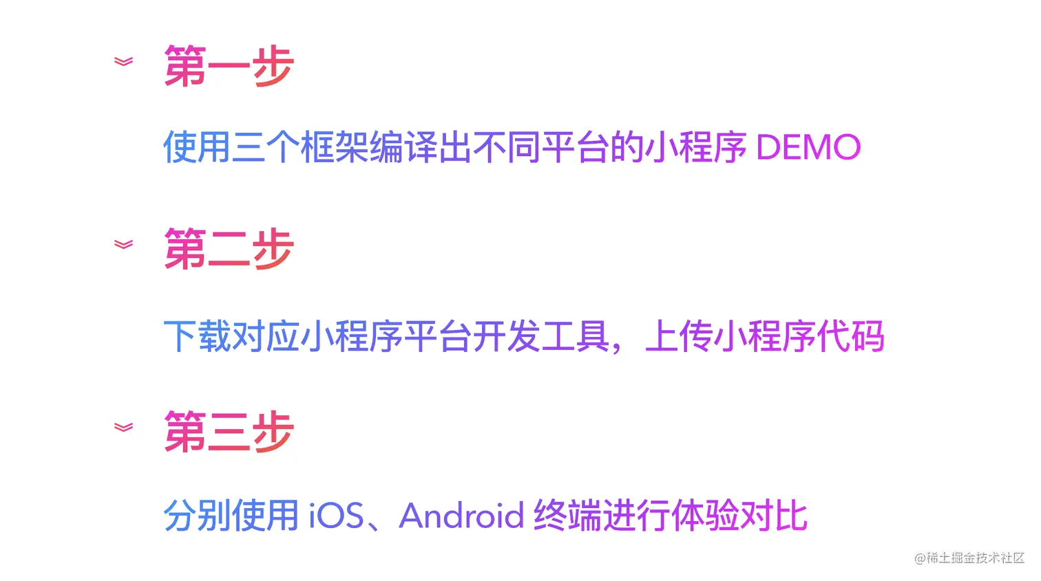在本文中,我们邀请了 FinClip 前端开发工程师蒋雪,使用不同的编译框架编译出不同平台的小程序 DEMO,并在 iOS 与 Android 设备中进行实际体验对比,针对**「小程序的稳定性,框架支持度,列表渲染性能,操作系统支持度,组件支持度与跨平台性」**进行综合对比,从而帮助开发者找出最适合自己的小程序平台与框架。