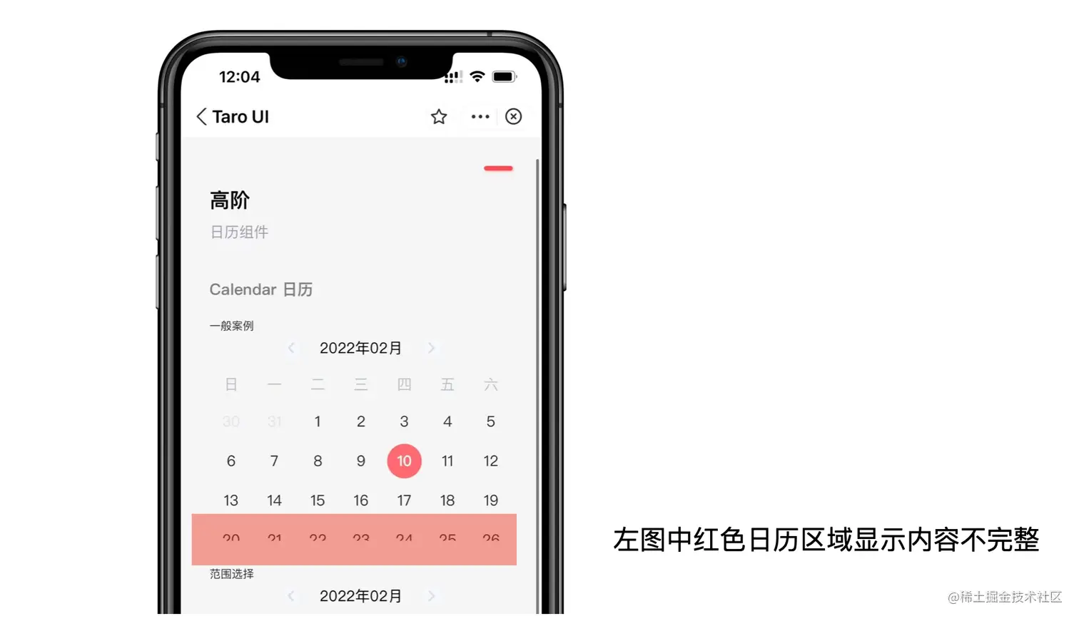 月末的日历组件无法全部显示