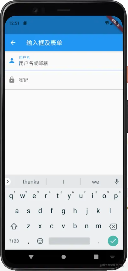 class FormTestRoute extends StatefulWidget { @override _FormTestRouteState createState() => new _FormTestRouteState(); } class _FormTestRouteState extends State<FormTestRoute> { TextEditingController _unameController = new TextEditingController(); TextEditingController _pwdController = new TextEditingController(); GlobalKey _formKey= new GlobalKey<FormState>(); @override Widget build(BuildContext context) { return Scaffold( appBar: AppBar( title:Text("Form Test"), ), body: Padding( padding: const EdgeInsets.symmetric(vertical: 16.0, horizontal: 24.0), child: Form( key: _formKey, //设置globalKey,用于后面获取FormState autovalidate: true, //开启自动校验 child: Column( children: <Widget>[ TextFormField( autofocus: true, controller: _unameController, decoration: InputDecoration( labelText: "用户名", hintText: "用户名或邮箱", icon: Icon(Icons.person) ), // 校验用户名 validator: (v) { return v .trim() .length > 0 ? null : "用户名不能为空"; } ), TextFormField( controller: _pwdController, decoration: InputDecoration( labelText: "密码", hintText: "您的登录密码", icon: Icon(Icons.lock) ), obscureText: true, //校验密码 validator: (v) { return v .trim() .length > 5 ? null : "密码不能少于6位"; } ), // 登录按钮 Padding( padding: const EdgeInsets.only(top: 28.0), child: Row( children: <Widget>[ Expanded( child: RaisedButton( padding: EdgeInsets.all(15.0), child: Text("登录"), color: Theme .of(context) .primaryColor, textColor: Colors.white, onPressed: () { //在这里不能通过此方式获取FormState,context不对 //print(Form.of(context)); // 通过_formKey.currentState 获取FormState后, // 调用validate()方法校验用户名密码是否合法,校验 // 通过后再提交数据。 if((_formKey.currentState as FormState).validate()){ //验证通过提交数据 } }, ), ), ], ), ) ], ), ), ), ); } }