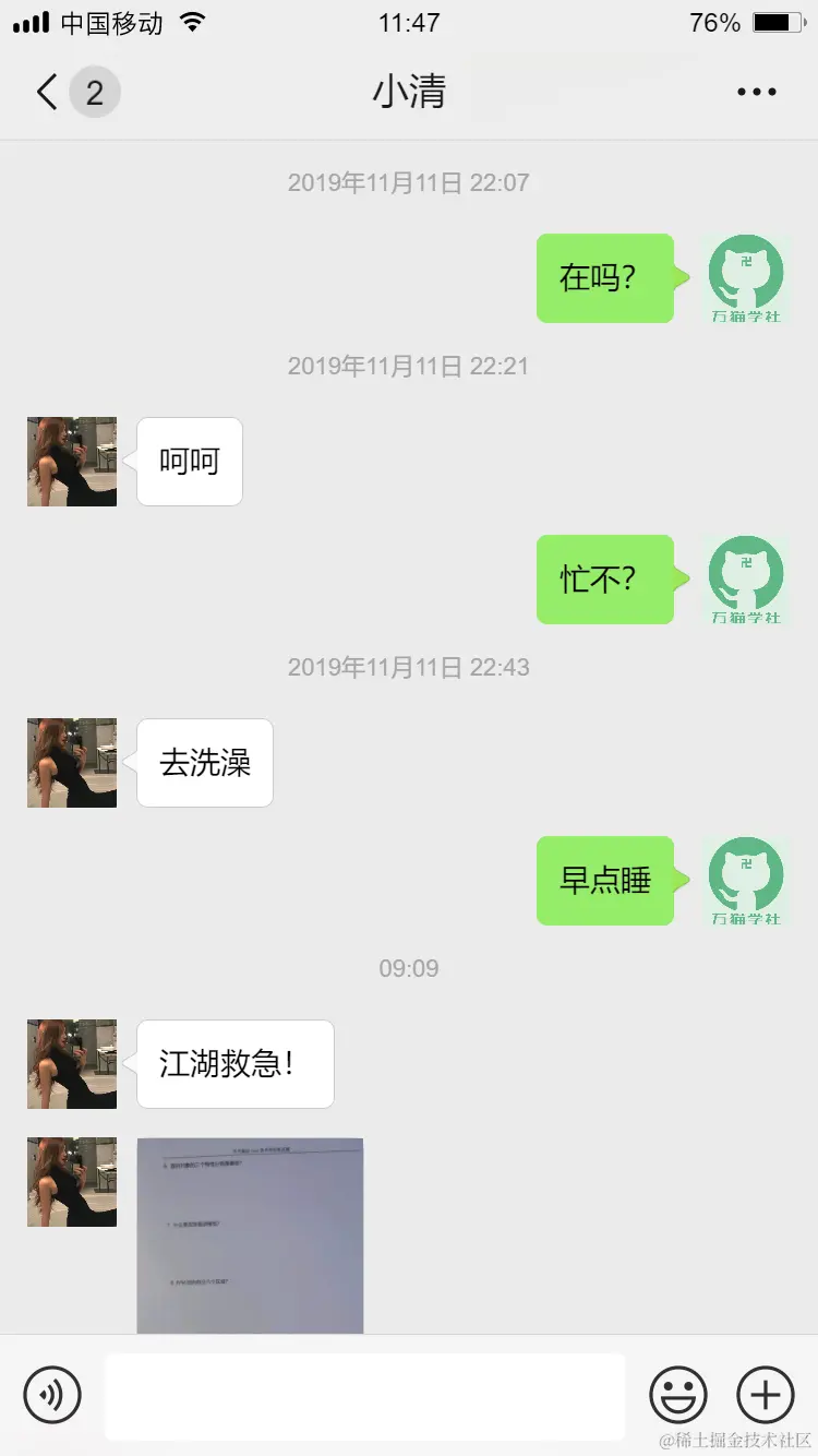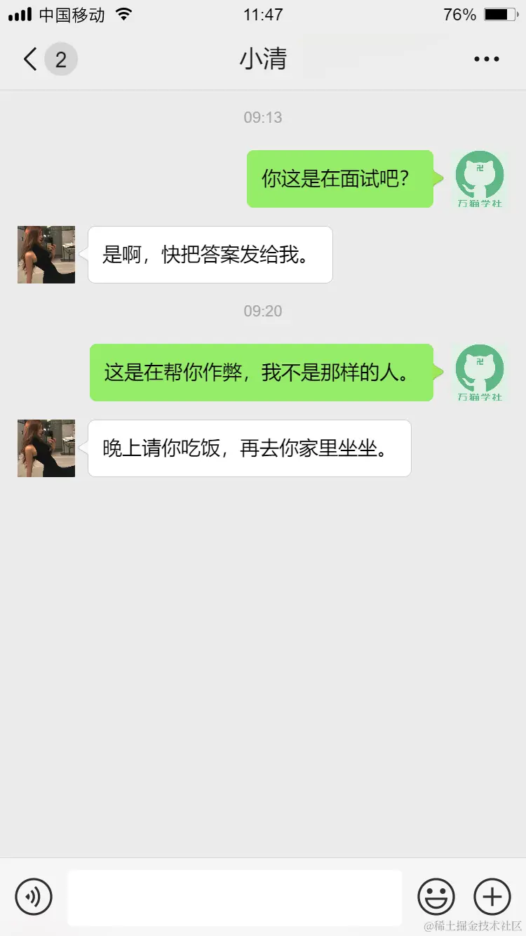 之前在学校举办的活动上,认识了一个学妹。我死磨硬泡终于加了她的微信,经常给她发微信。 可是她总是对我爱答不理的,我心里总有一天让你高攀不起,后来就很少联系了。今天突然主动联系我: