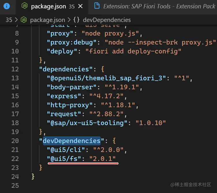 检查 SAP UI5 项目里的 package.json 文件里的 dependencies, 查看是否定义了 Fiori Tools CLI 对应的依赖: