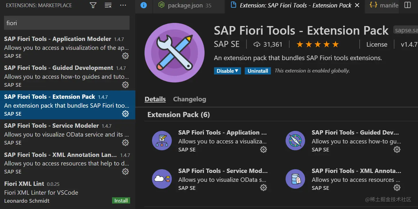如果采用 Visual Studio Code 作为 SAP UI5 开发工具,我们可以通过安装一个名为 SAP Fiori Tools -Extension Pack 的扩展,来安装 SAP Fiori Tools: