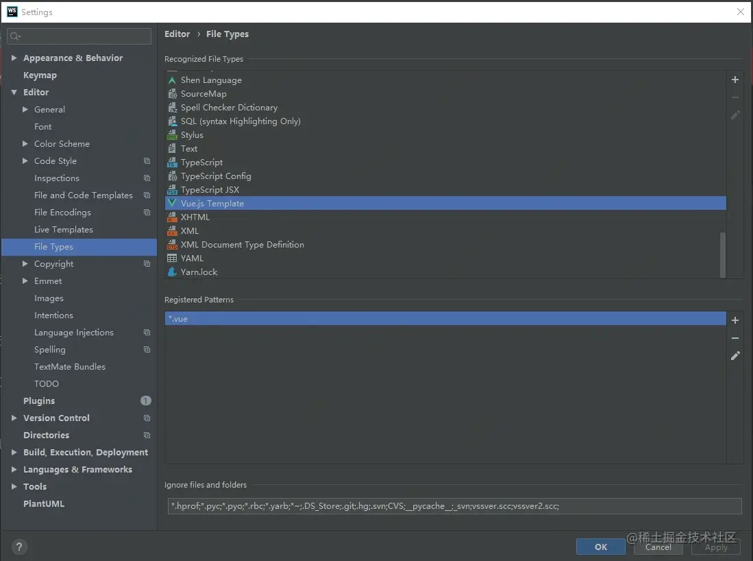 webstorm中.vue文件识别为text文件