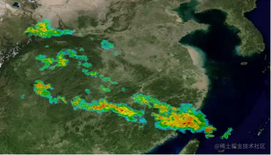 雷达拼图展示,计算并展示制定区域雷达拼图成果,有效地对各种气象数据进行分析,提高数据利用率,为天气预报、防灾减灾等提供辅助。