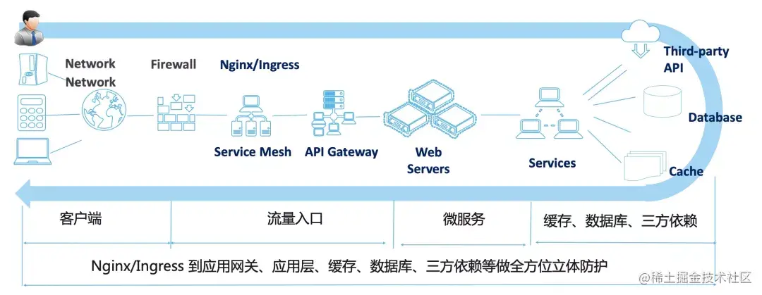 在分布式系统架构中,每个请求都会经过很多层处理,比如从入口网关再到 Web Server 再到服务之间的调用,再到服务访问缓存或 DB 等存储。在高可用流量防护体系中,我们建议在流量链路的每一层都进行针对性的流量防护与容错手段,来保障服务的稳定性。上一期我们介绍了如何在 Nginx/Ingress 网关层接入 AHAS Sentinel 来进行前置流量防护,本篇文章我们来介绍一下在 Web 应用层进行细粒度的高可用流量防护。