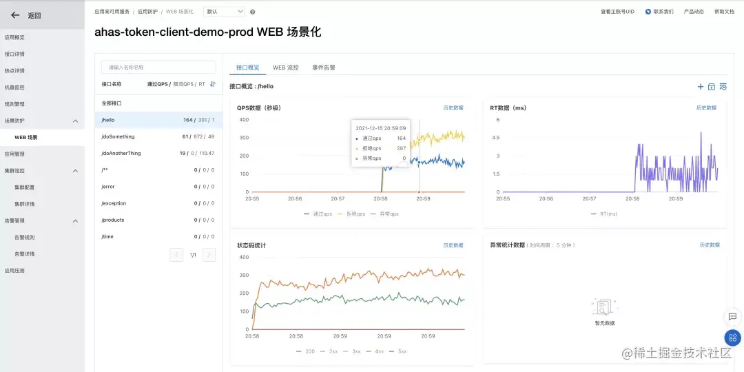 以上就是一个简单的 Spring Boot Web 场景流控的示例,欢迎大家在 AHAS 控制台体验,有关 Web 场景防护的更多信息可以点击此处,查看参考文档。