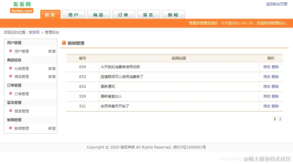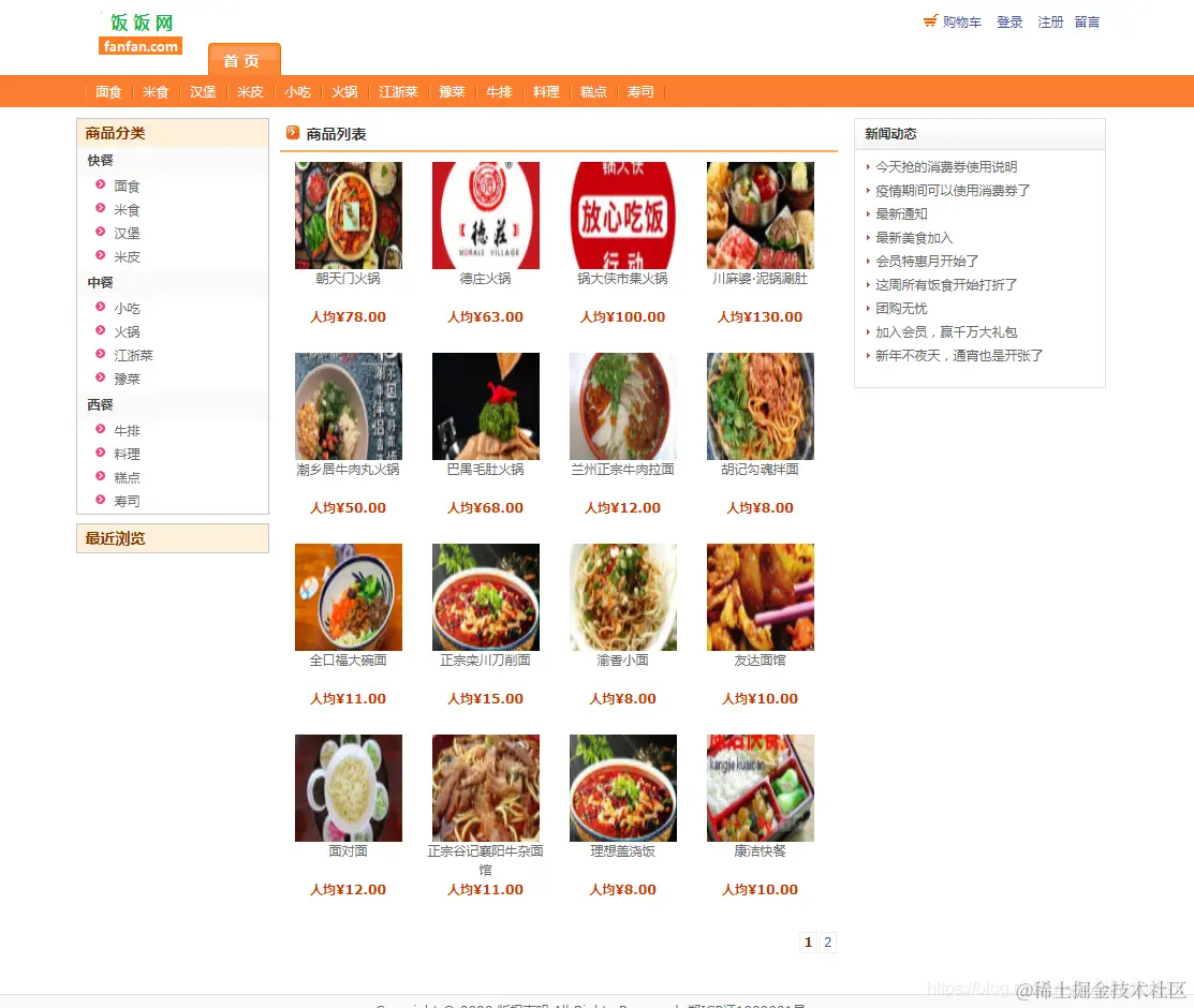 前台页面功能: