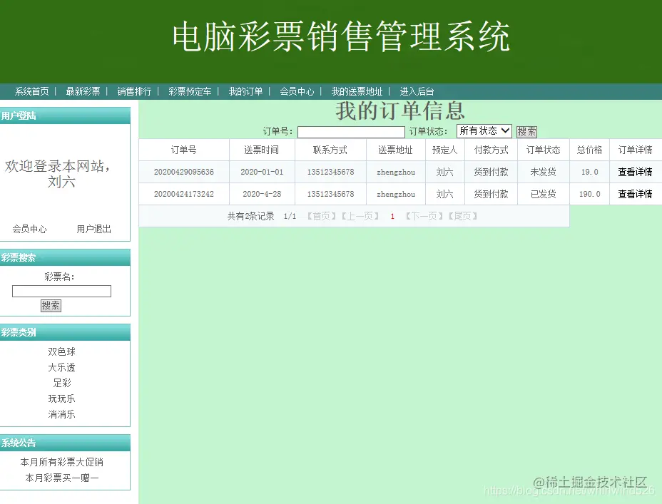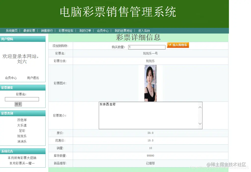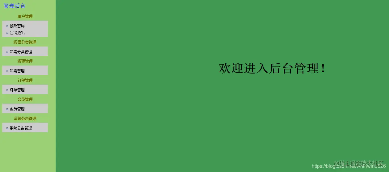 后台管理者主要实现会员管理、彩票管理、销售统计管理以及系统公告信息等管理。 后台管理对于用户进行系统的维护和管理很方便。