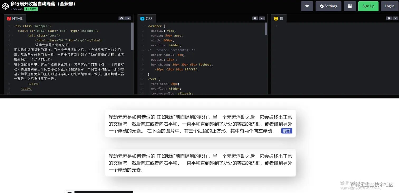 首先,跟上面那篇文章里介绍的一样,用input来记录当前是展开还是收起状态,