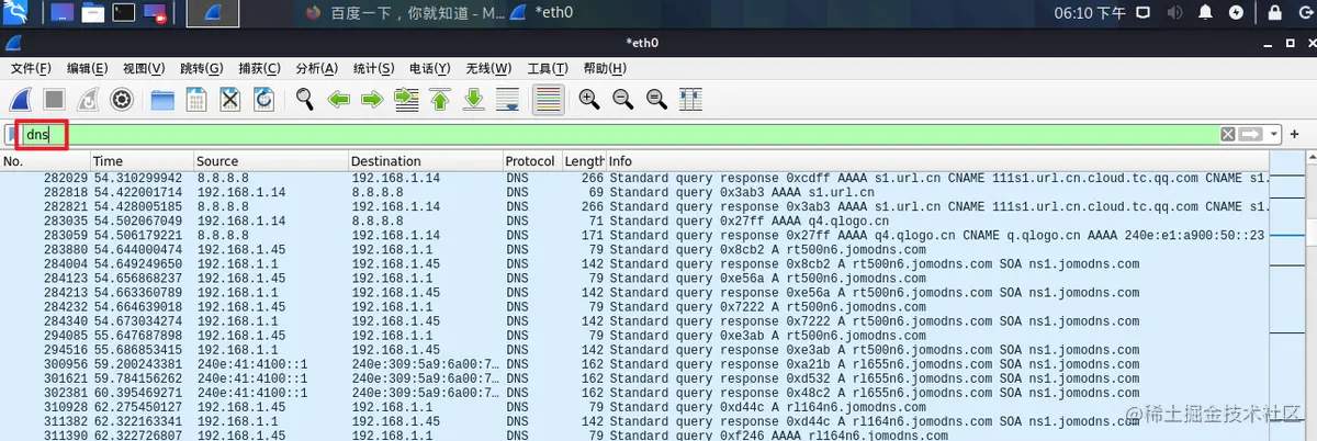 例5:使用过滤器筛选dns的数据包