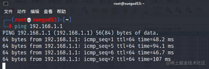在终端ping 192.168.1.1