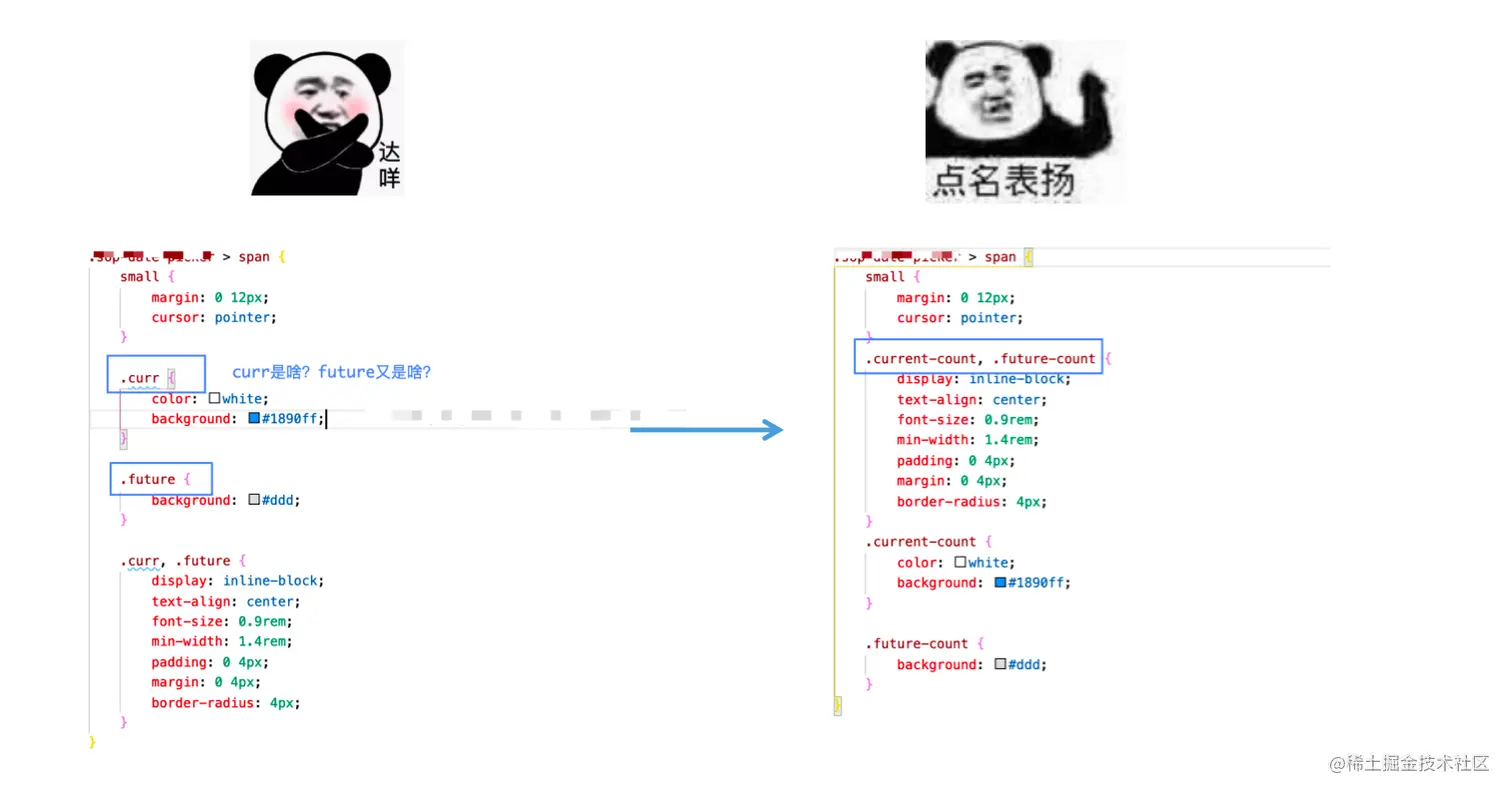 - 不规范的命名使得样式难以定位到对应的HTML元素,不同开发者进行开发时容易写出重复的代码