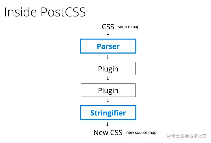 狭义的PostCSS:“A tool for transforming CSS with JavaScript”,将CSS转换为JS代码的工具,提供了将CSS代码解析为AST的能力,并向开发者暴露出能够修改CSS代码的JavaScript API。