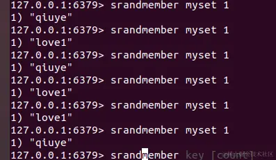 srandmember key count:随机选取count数量的元素