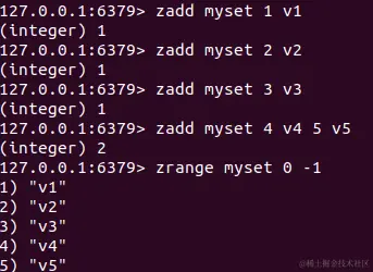 查看范围内的元素,zrange key start end