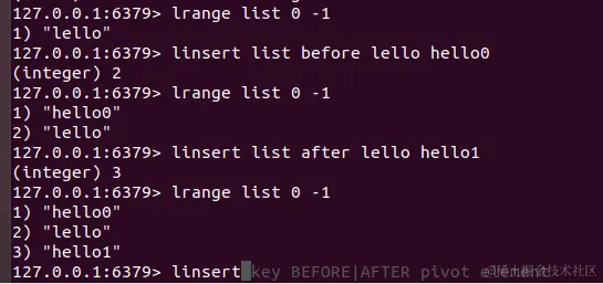 linsert:将某个具体的值插入到列表里某个元素的前面或者后面