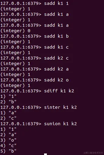 集合的差集sdiff、交集sinter、并集sunion: