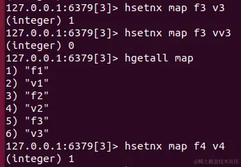 hsetnx key field value:如果不存在则可以设置,如果存在则不能设置