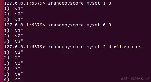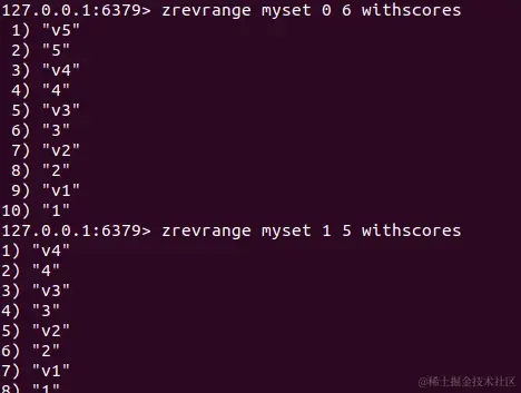 zrevrange key start stop [withscores]:排序,可以升序,可以降序,区间是左闭右开