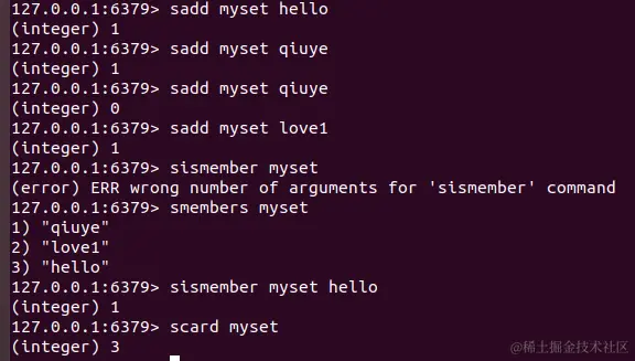 sismember key value:查看key里面value是否存在,存在就返回1