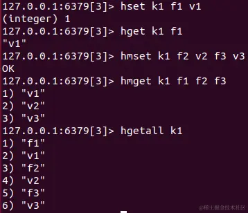 hget key field:获取一个字段值